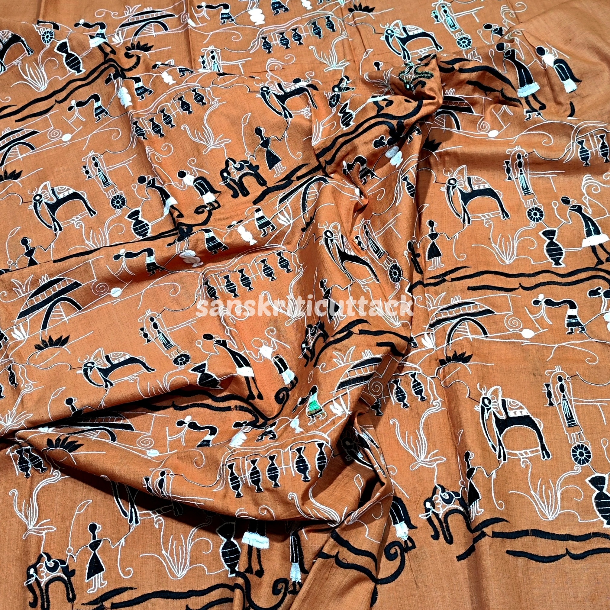 Crafted with meticulous attention to detail, this dress material features delicate and intricate Nuapatna embroidery. Each stitch is carefully handcrafted by skilled artisans, showcasing their expertise and dedication. The tan and black color combination adds a touch of elegance and versatility, making it suitable for various occasions.