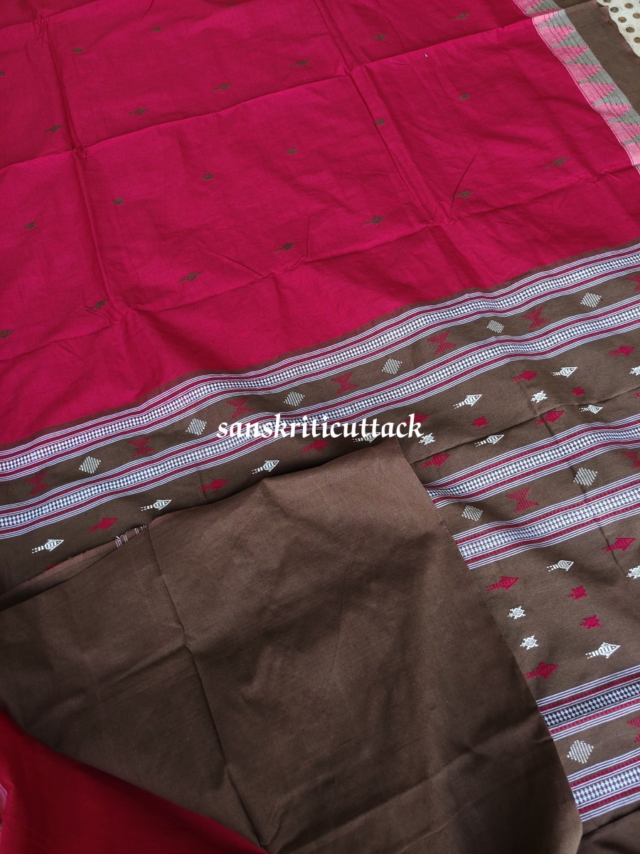Immerse yourself in the rich heritage of Odisha with this Tomato Red & Soil Brown Handwoven Cotton Kotpad Saree — a timeless handloom creation that blends earthy tones with traditional tribal craftsmanship. Handwoven by skilled artisans using finely spun cotton, this saree offers unrivalled comfort, breathability, and cultural artistry — perfect for festive occasions, cultural events, weddings, and stylish ethnic wardrobes.
