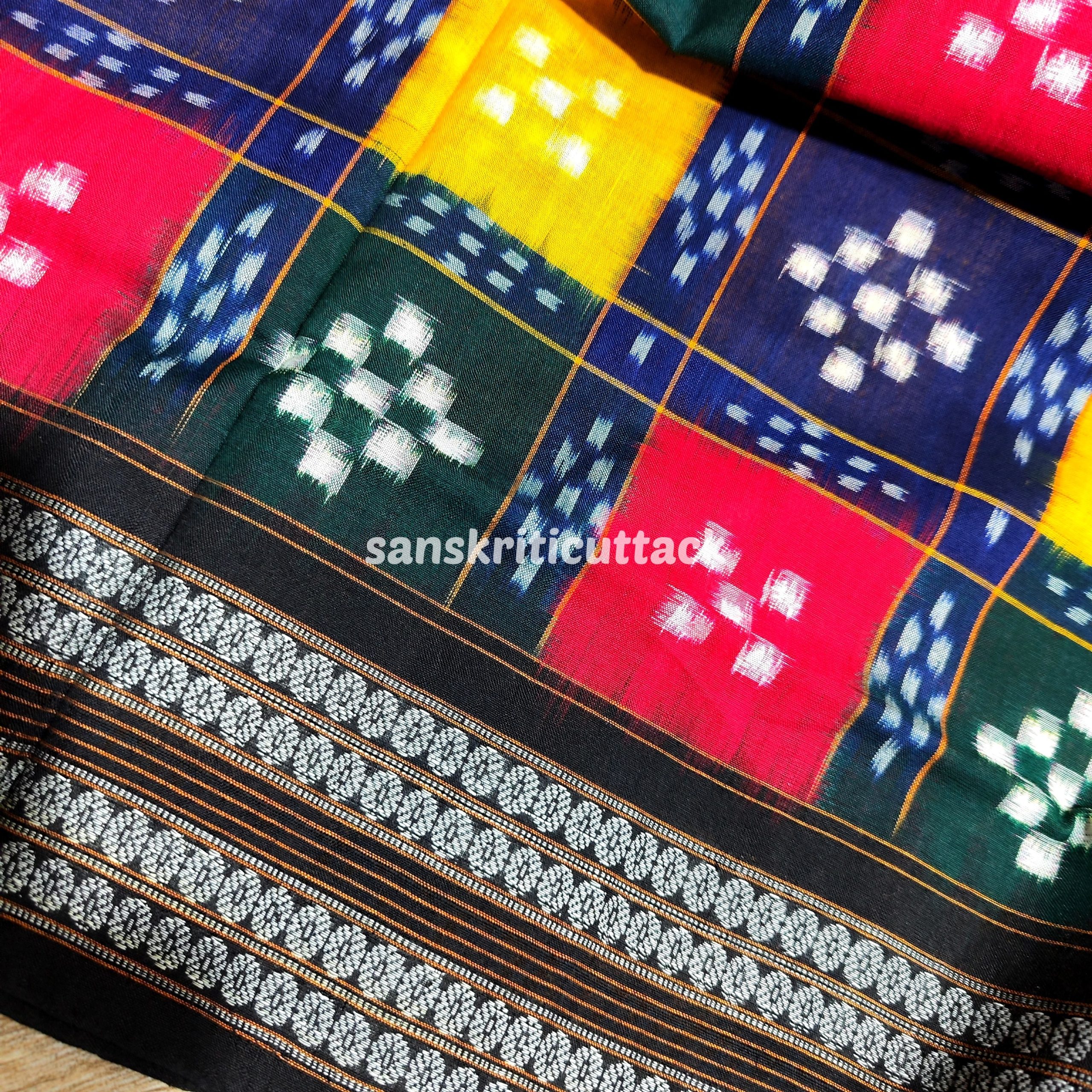 Discover the allure of cultural heritage with our Vibrant Multi-color Cotton Pasapalli Saree, a treasure from the enchanting land of Odisha, India. Known as Saktapar, this Pasapalli Saree is a handloom masterpiece meticulously crafted by artisans in Bargarh district.