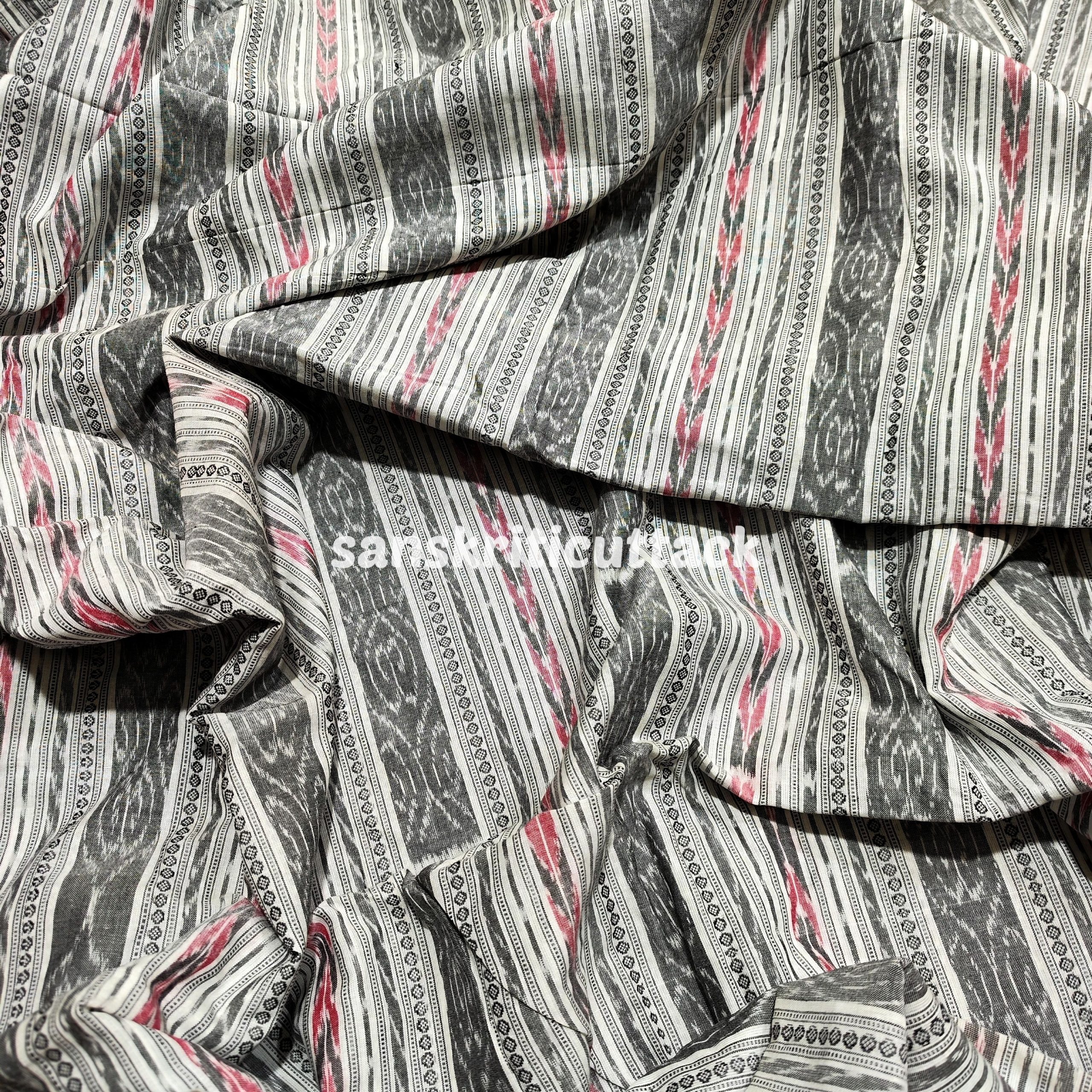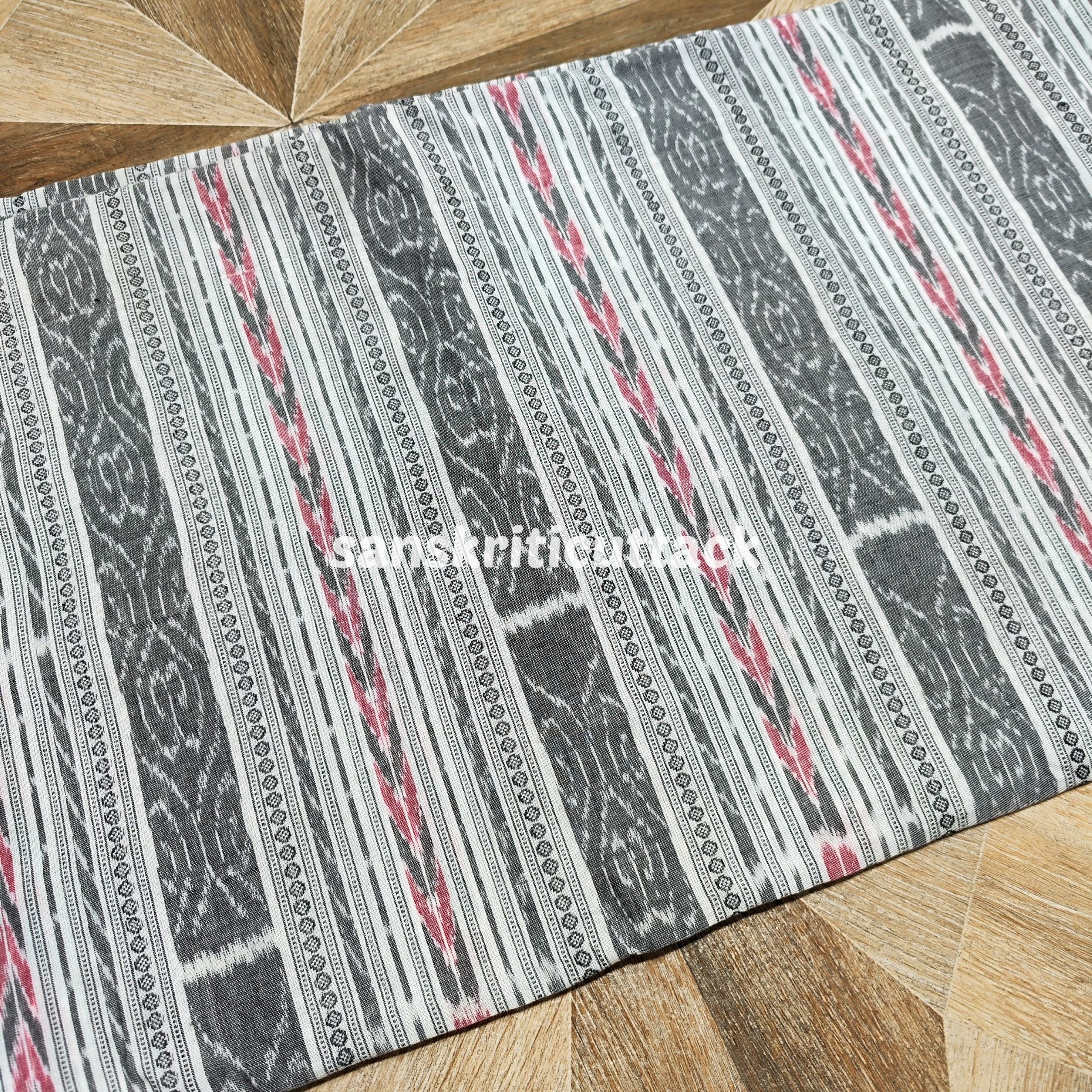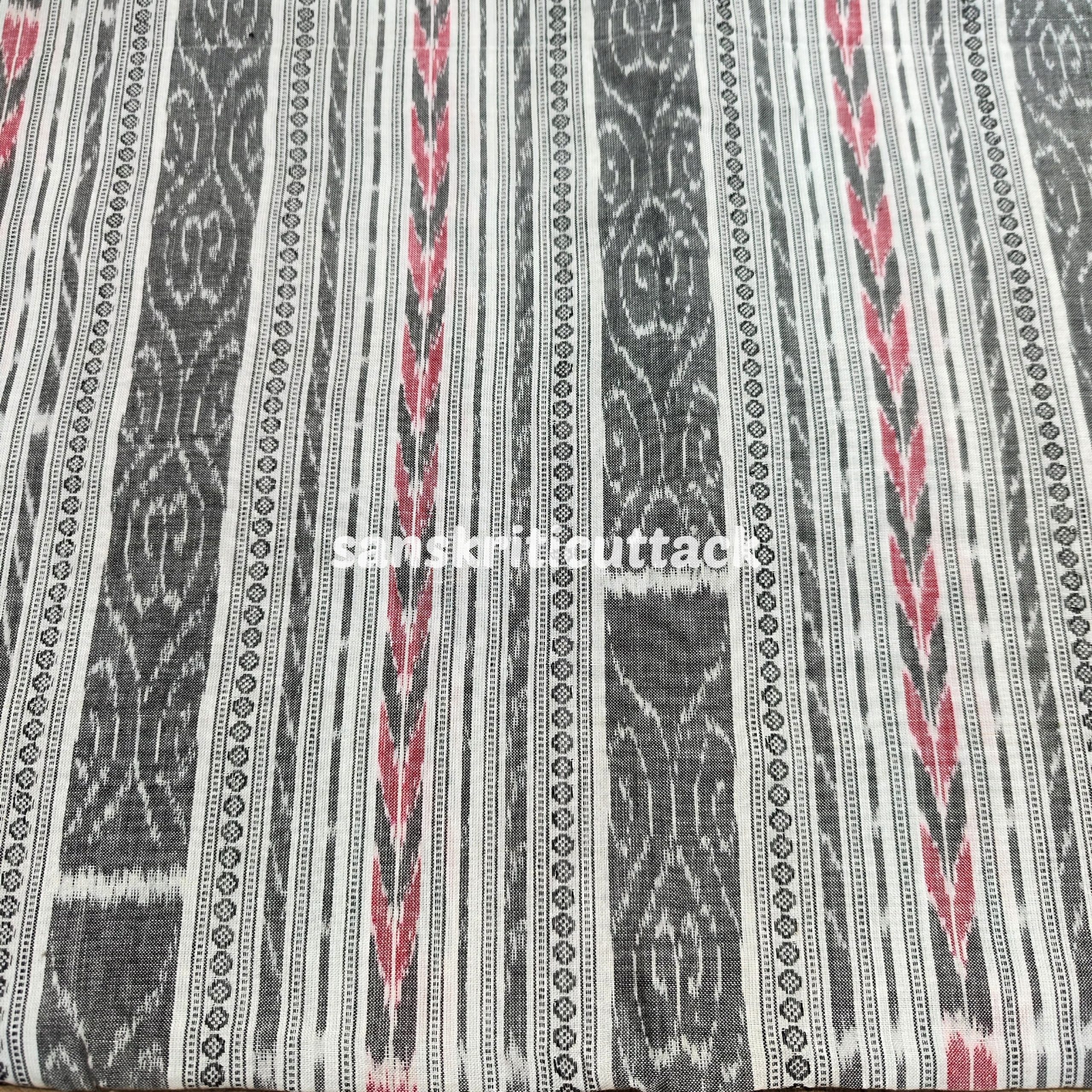 This beautiful white handloom cotton fabric is handwoven using the traditional Sambalpuri Ikat technique. Ikat is a dyeing technique that creates intricate patterns by resist dyeing either the warp or weft fibers prior to dyeing. The fabric features a classic Sambalpuri Ikat pattern in shades of white, making it perfect for both casual and formal wear. The pure cotton material makes it lightweight, breathable, and comfortable to wear in any weather. This versatile fabric can be used for a wide range of projects, from clothing to home decor and accessories. With its timeless design and high-quality construction, this Sambalpuri Ikat fabric is sure to add a touch of elegance and style to any project. This White Handloom Cotton Sambalpuri Ikat Fabric is a versatile and sustainable textile made using a traditional Ikat weave. The fabric is made with soft and breathable cotton and features a beautiful Ikat pattern created using a resist dyeing technique with natural dyes. The unique Ikat design and pure white color make this fabric perfect for creating a variety of fashion and home decor items. The fabric is lightweight and durable, ensuring that it will last for a long time. Our artisanal Ikat fabric is produced sustainably, using eco-friendly materials and techniques. Each piece is handmade with care and attention to detail, ensuring that you receive a high-quality fabric that celebrates India’s rich cultural heritage. Whether you’re looking to create a stylish summer dress, a light and airy curtain, or a unique tablecloth, this White Handloom Cotton Sambalpuri Ikat Fabric is a perfect choice. Its unique Ikat design and soft cotton texture make it a versatile fabric that can be used for clothing, home decor, and other textile creations.