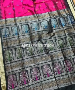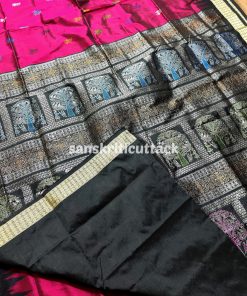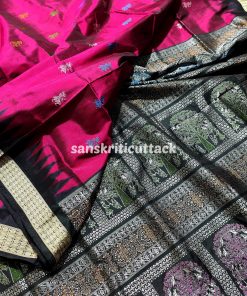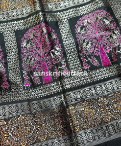 This Wine Black Raja Doli Bomkai Silk Saree is made using high-quality silk fabric, ensuring durability and comfort. It is easy to drape and is perfect for any occasion, be it a wedding, party, or festive celebration.