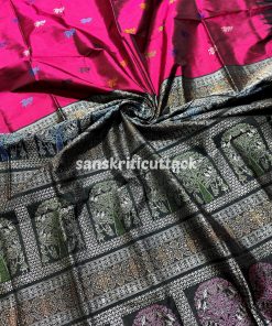 This Wine Black Raja Doli Bomkai Silk Saree is made using high-quality silk fabric, ensuring durability and comfort. It is easy to drape and is perfect for any occasion, be it a wedding, party, or festive celebration.