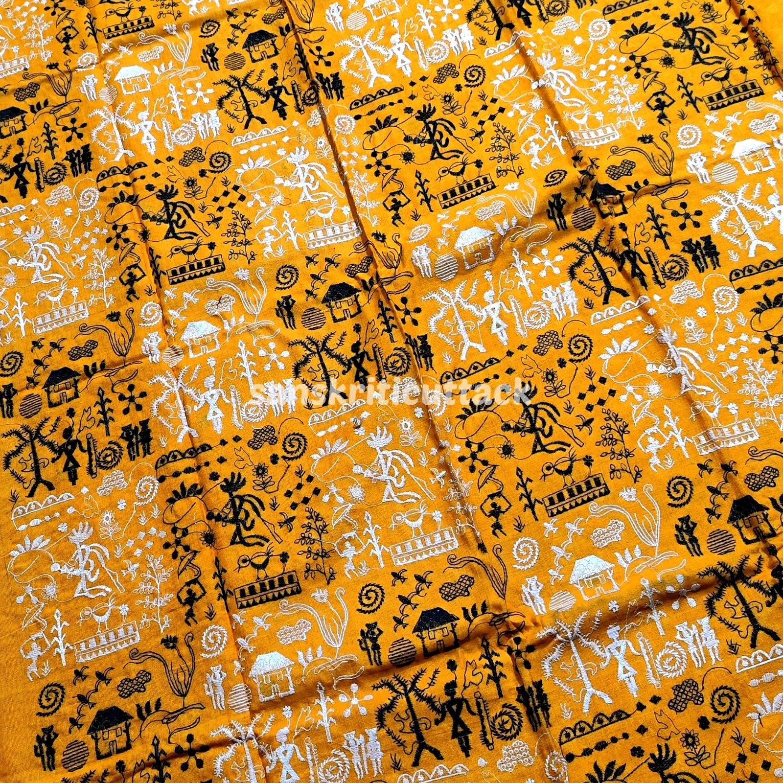 Step into the world of timeless elegance with our Yellow Black Embroidery Nuapatna Handloom Cotton Dress Material. Crafted by the skilled master weavers of Nuapatna, Odisha, this 3-piece suit material set is a true embodiment of tribal artistry and fine quality.
