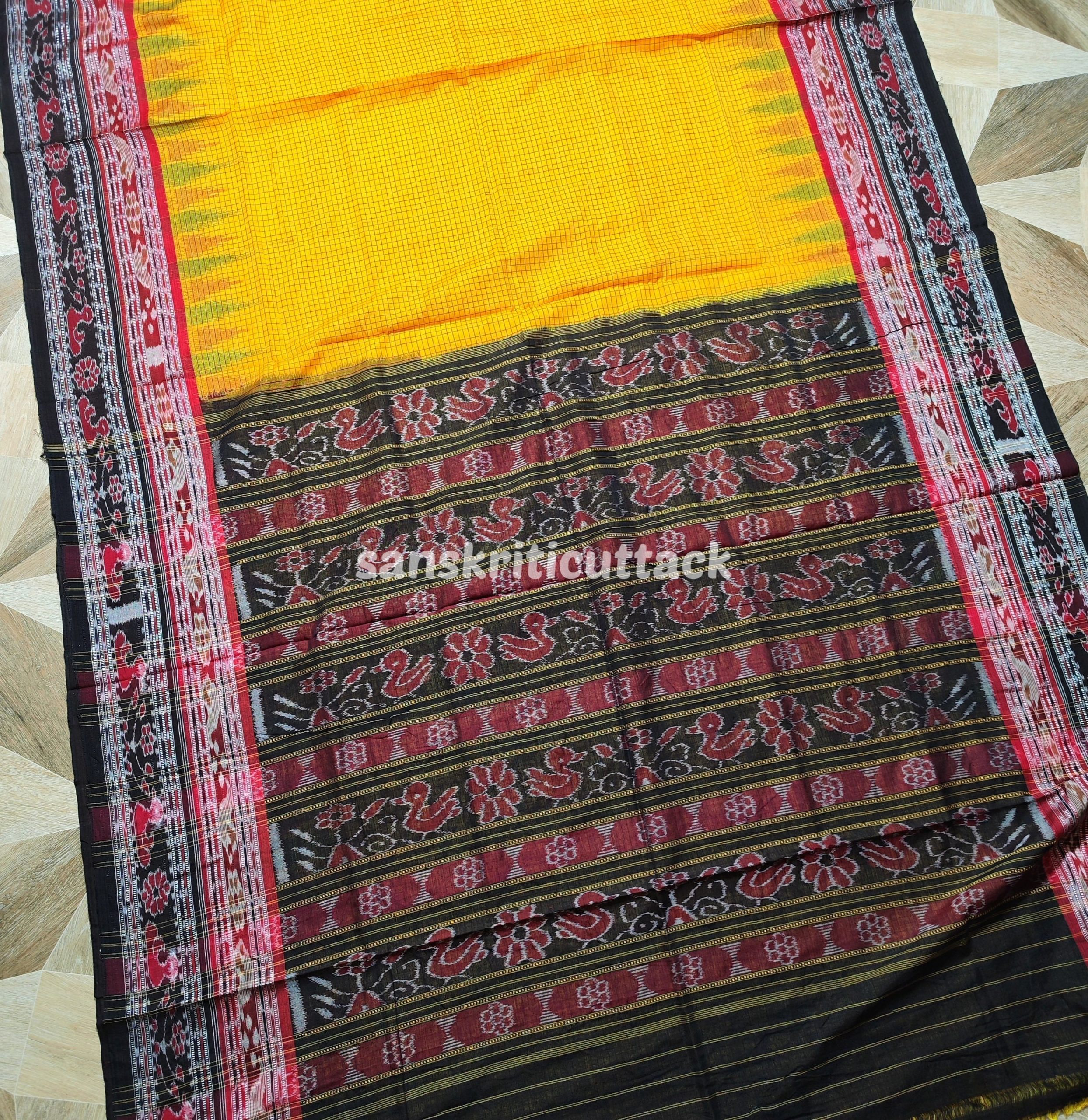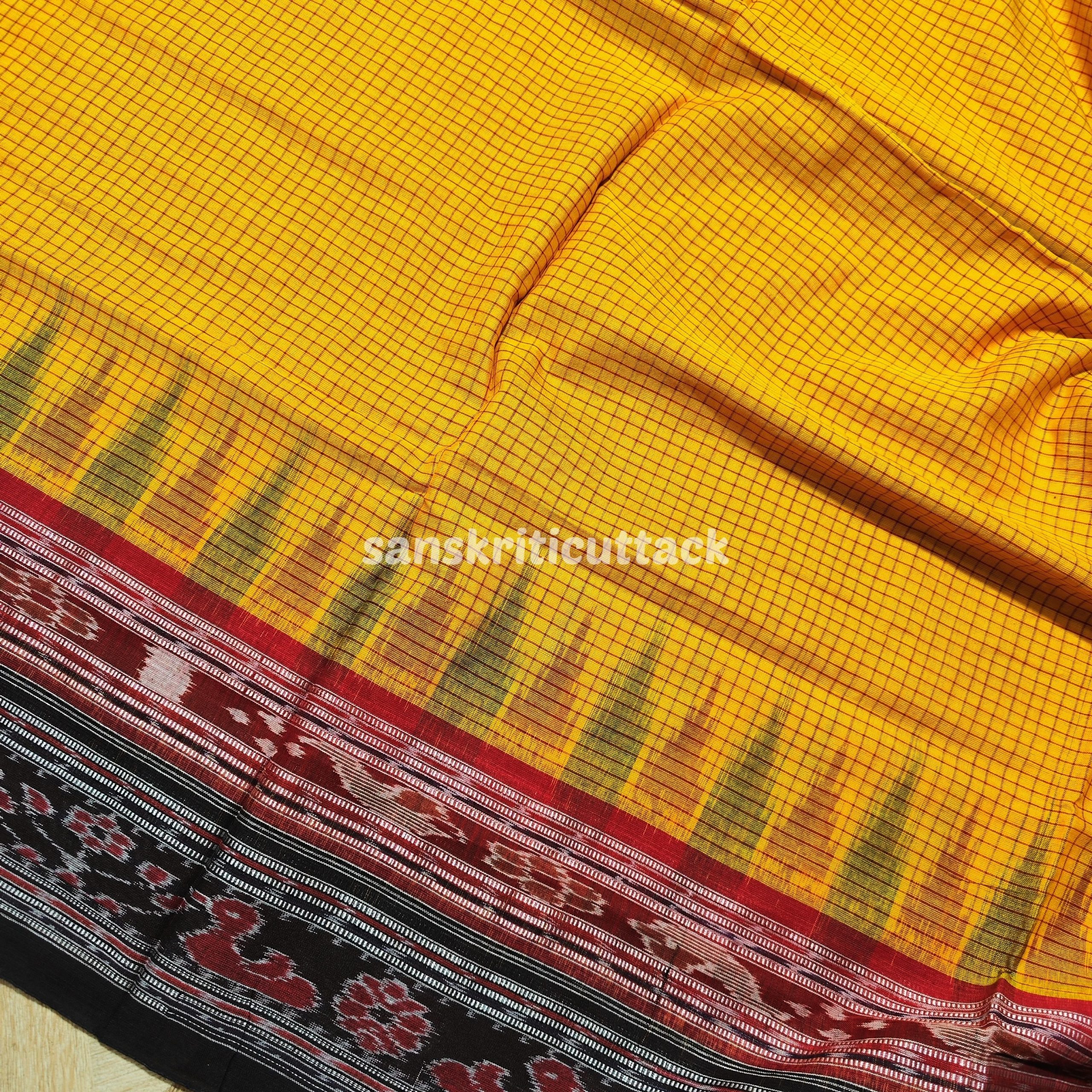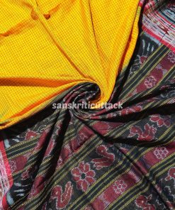 Elevate your traditional wardrobe with our stunning Yellow Black Sachipar Cotton Saree without Blouse. Crafted with utmost care and attention to detail, this saree embodies the perfect blend of timeless beauty and contemporary charm. The vibrant yellow and black combination, adorned with intricate Sachipar motifs, makes this saree a true masterpiece. Made from high-quality cotton fabric, it offers unmatched comfort and breathability, ensuring you feel your best throughout the day.