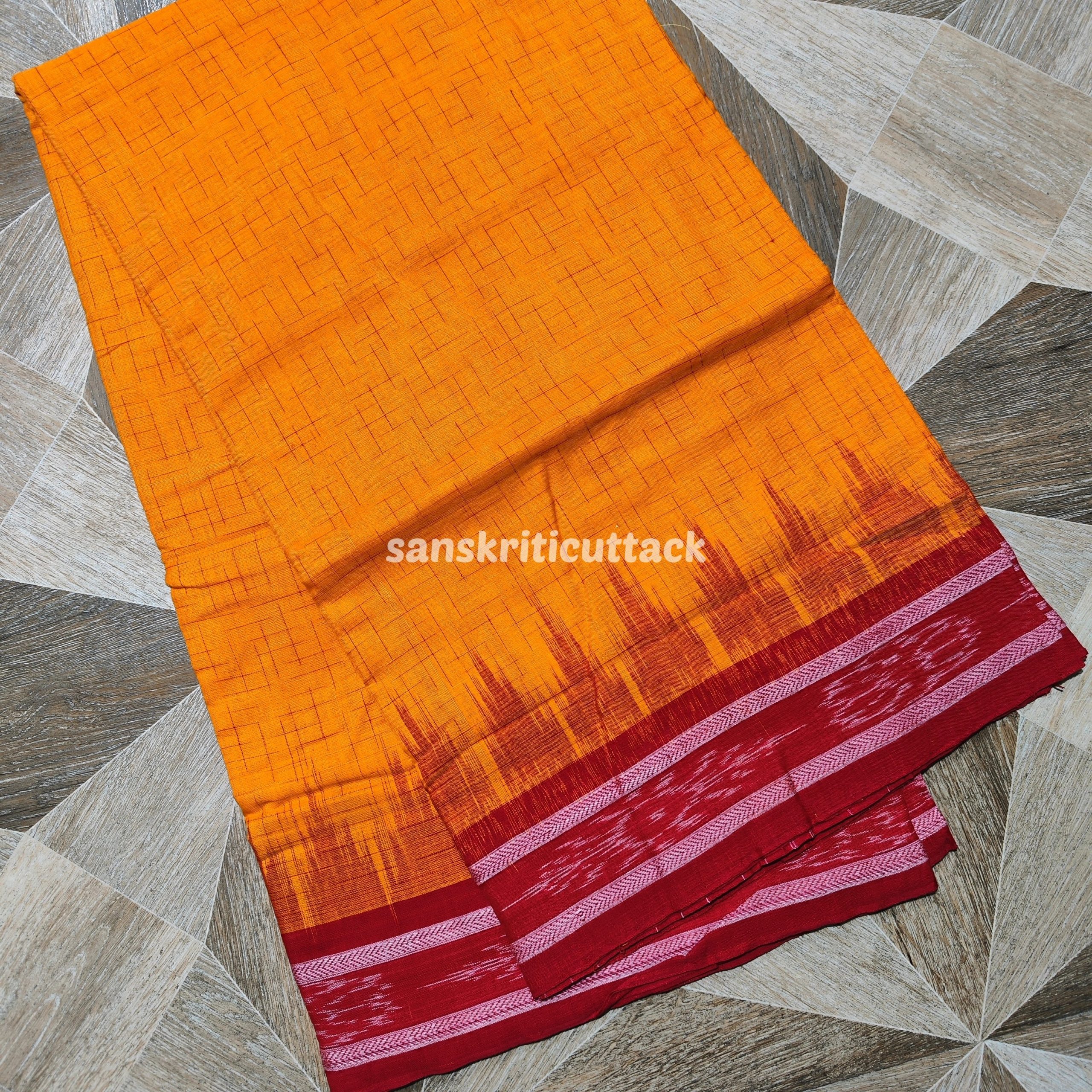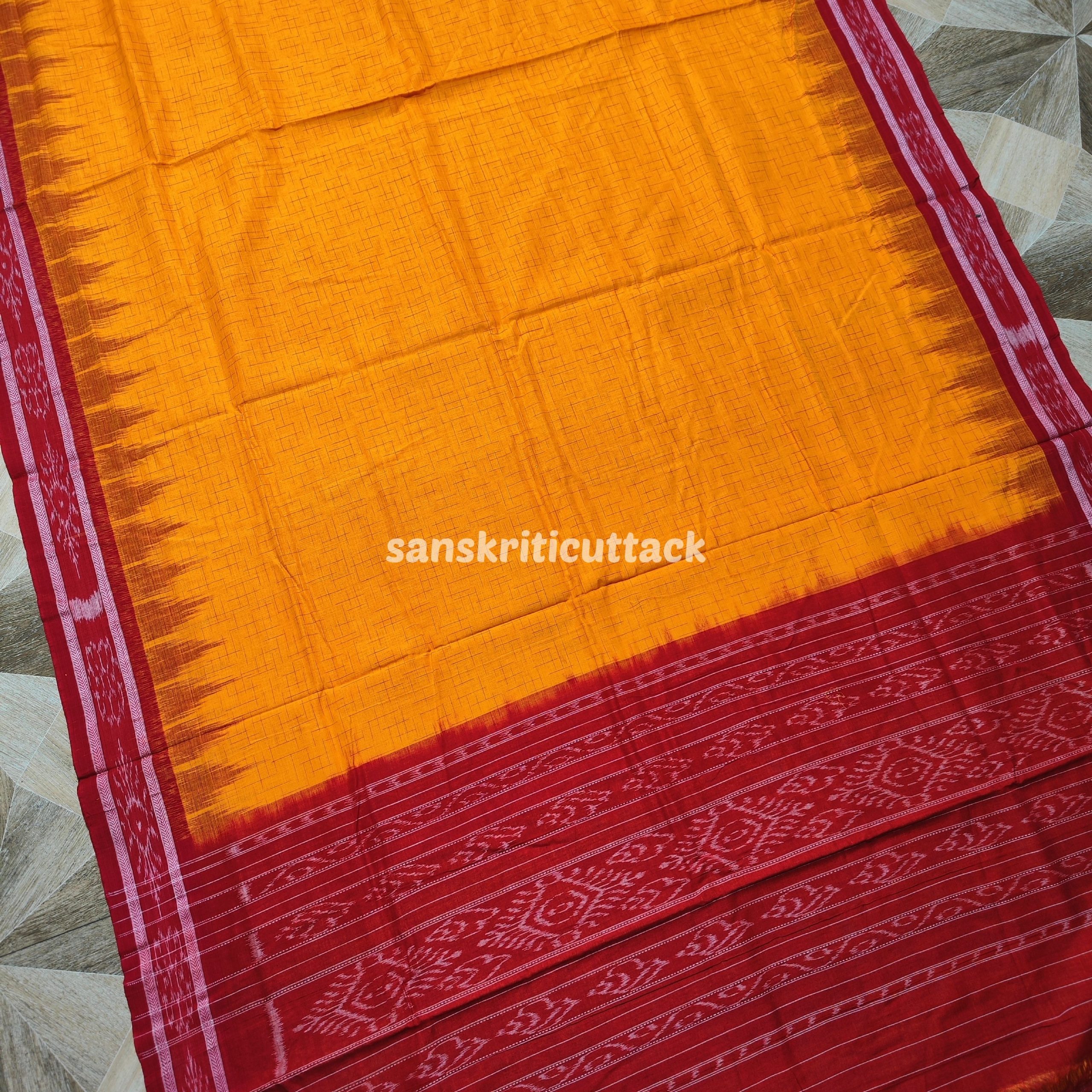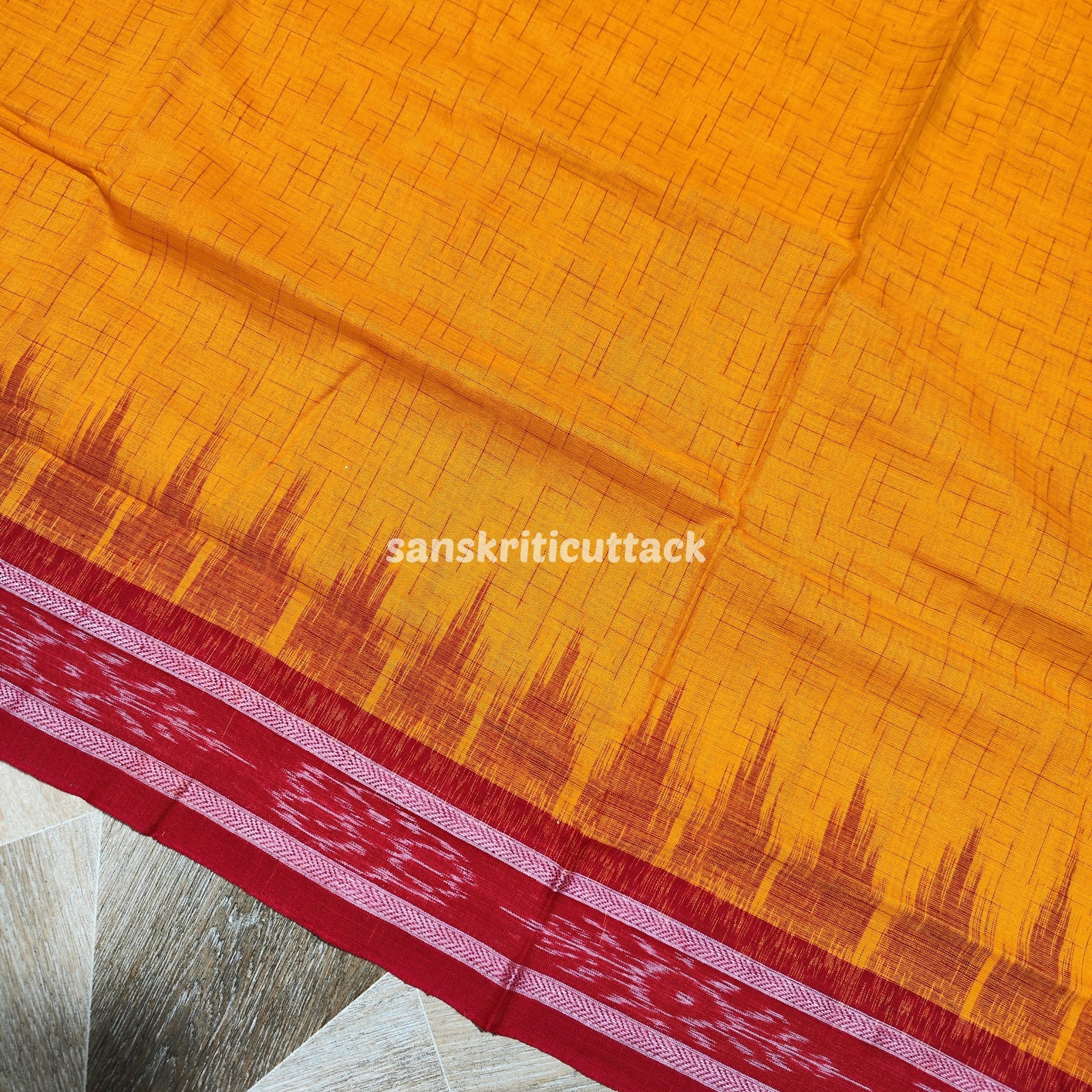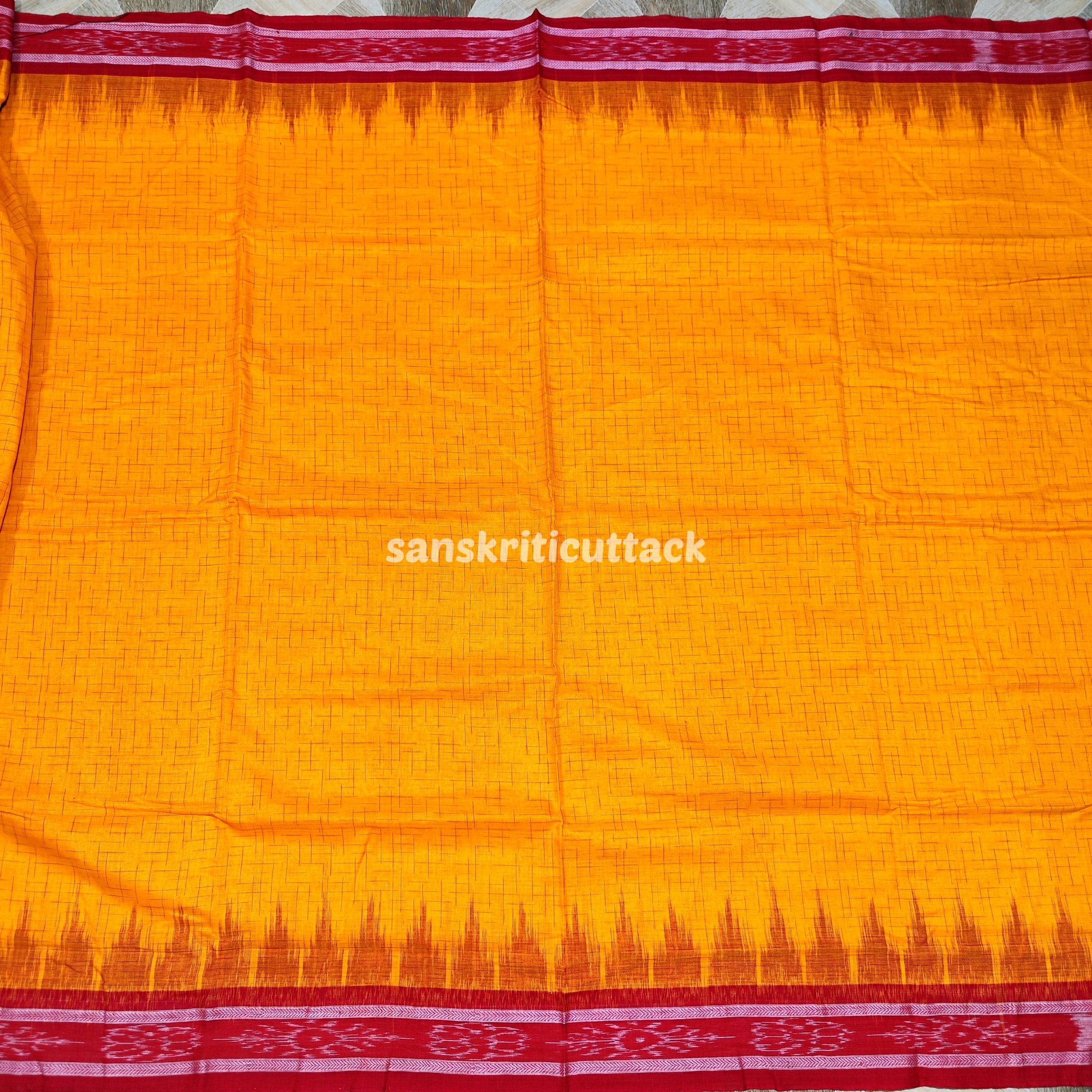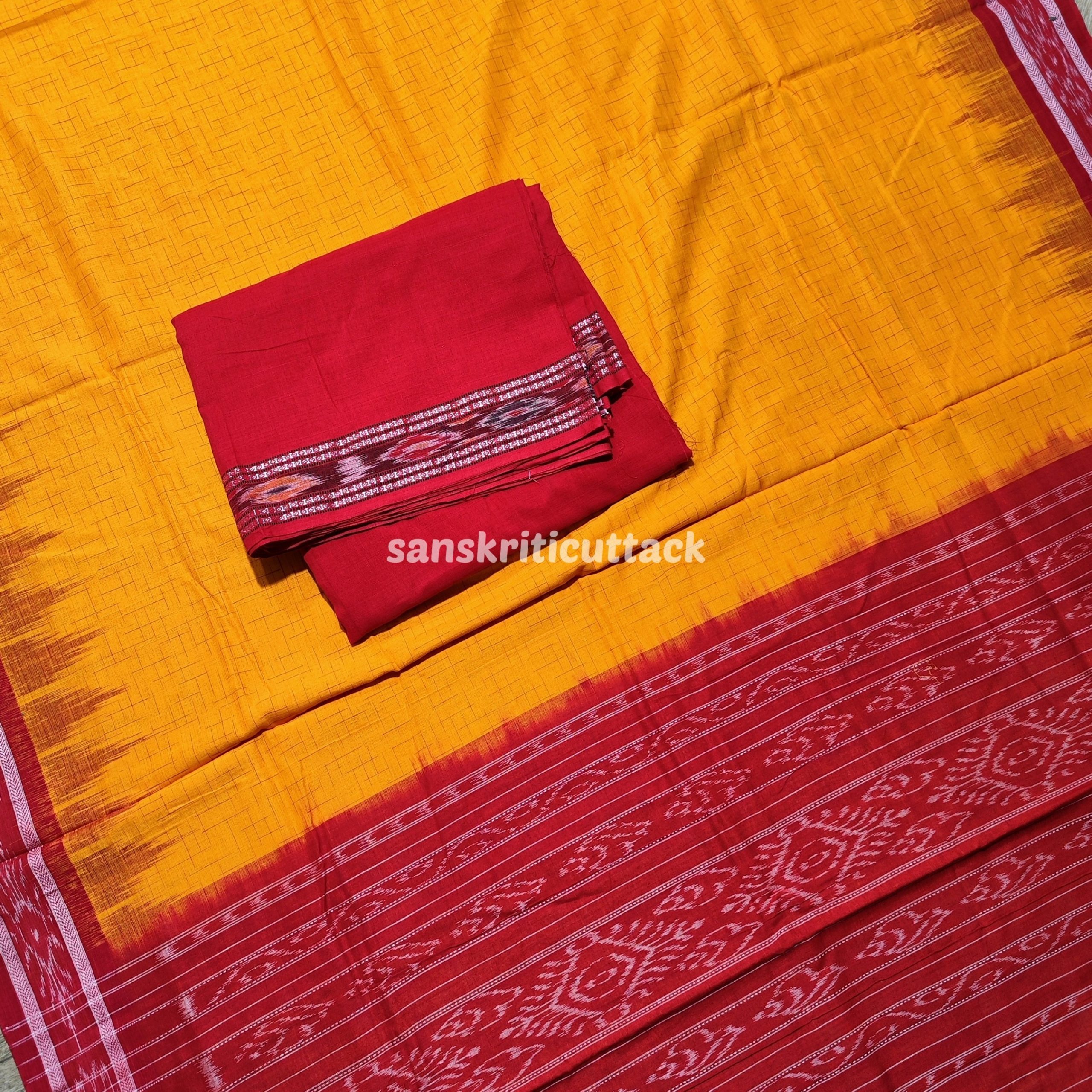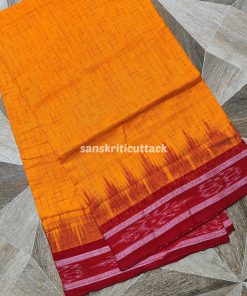 Discover the timeless charm of the Yellow Red Jharna Handloom Ikkat Cotton Khandua Saree. Woven by skilled artisans, this saree is a masterpiece of traditional Odisha handloom weaving techniques. The vibrant yellow and red hues are carefully crafted to reflect the elegance and cultural richness of Khandua sarees, making it perfect for both casual wear and festive occasions.