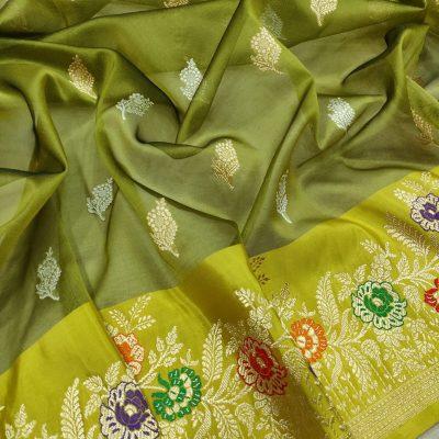 The versatility of Meenakari-embellished Banarasi sarees makes them perfect for various occasions. Be it a wedding, festival, or formal event, these sarees exude elegance and charm, elevating the wearer’s style and grace.