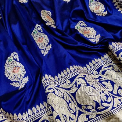 Blue sarees symbolize the divine and evoke a sense of tranquility. Often associated with Lord Krishna, who is depicted as having a blue complexion, this color represents spirituality, devotion, and calmness. Blue sarees are particularly popular in the southern regions of India, where they are worn during religious ceremonies and signify a connection to the divine.