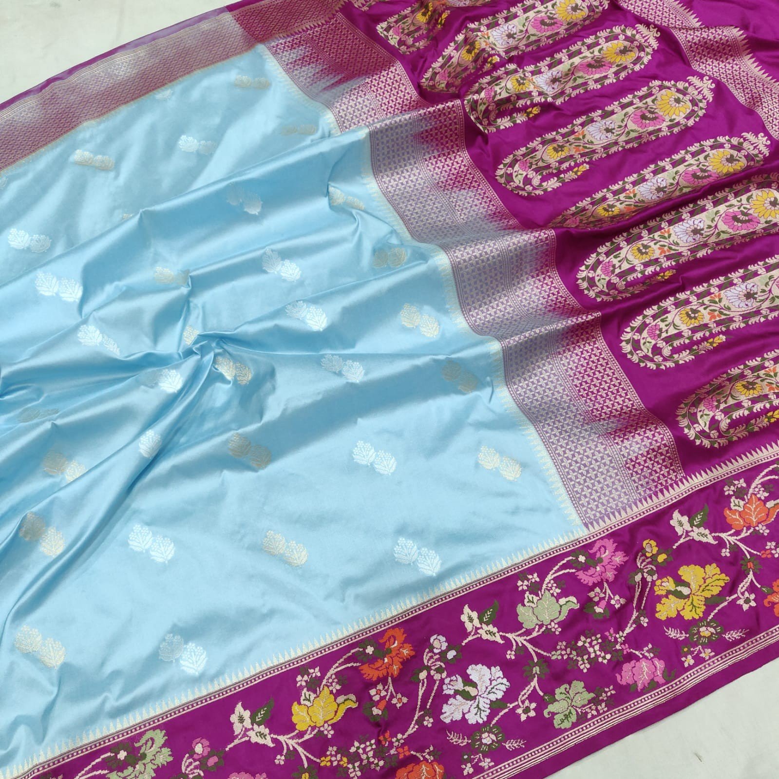 The creation of a silk saree is an art in itself. Weaving intricate patterns that tell stories of heritage and culture requires a level of skill that has been passed down through generations. Whether it’s the delicate zari work or the intricate motifs that grace the saree, each thread is a testament to the dedication and expertise of the artisans who create these masterpieces.